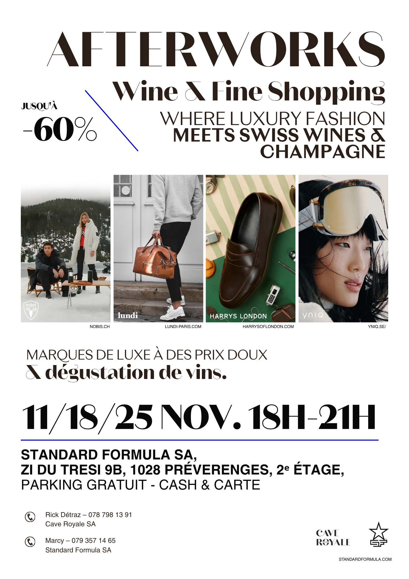 Envie d’un moment convivial alliant mode et dégustation de vins ? Ce mois de novembre, Cave Royale s’associe à Standard Formula pour trois soirées à Prévérenges, dédiées au luxe accessible et à l’art de vivre.